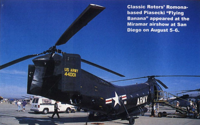 Classic Rotors’ Romona-based Piasecki “Flying Banana” appeared at the Miramar airshow at San Diego on August 5-6, 1999.