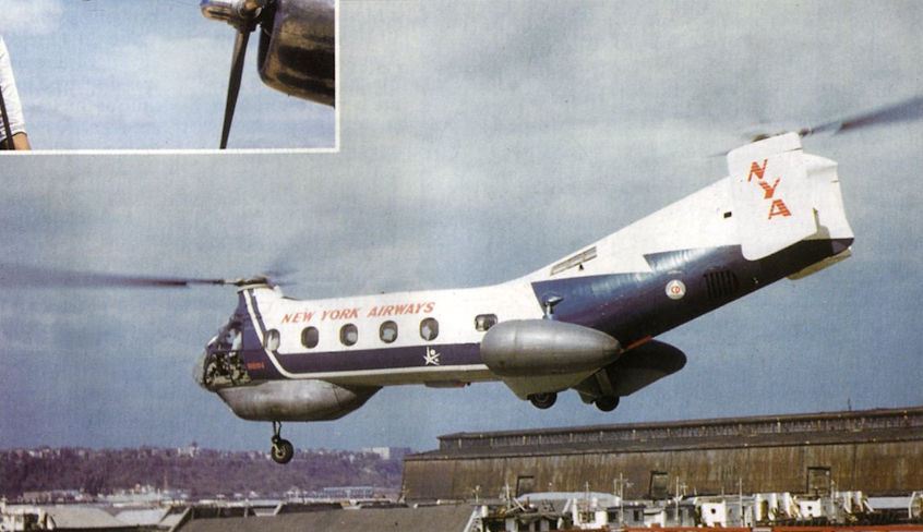 Регистрационный номер: N10104 [9] 21 апреля 1958г.:"New York Airways" приступила к эксплуатации Vertol Model 44В - улучшенного варианта вертолета продольной схемы Piasecki H-21. Комфортабельный салон вертолета допускал перевозку 15 пассажиров.