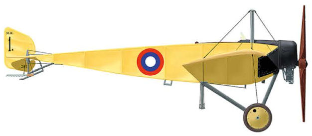 The Morane-Saulnier Type M armoured monoplane of 1914, showing the protective shield in front of its engine.