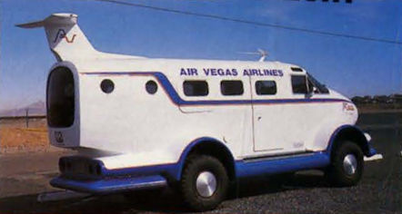 WELL, if you are Air Vegas, based at rustic 5 Henderson Airport near Las Vegas, you make it into a stylish coach in which to ferry Japanese tourists from hotels to the airline's fleet of Beech 99 airliners for scenic flights over Las Vegas, Boulder Dam, the Grand Canyon and other local sights. The old C-45 fuselage has been fitted with a jet intake, small T-tail, and a luxurious interior complete with a large carved wood bas-relief nude on the copilot's former instrument panel.