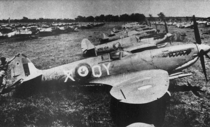 Регистрационный номер: MD371 [2] Spitfire LF VIII, MD371, in company with many other Spitfires was flown into this MU and destroyed by the simple expedient of dropping concrete blocks on them with the aid of a crane.