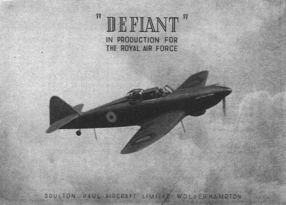 TURRET FIGHTER: The Boulton Paul Defiant two-seater fighter which mounts a four-gun "B.P." turret. This type has not yet been in action but should prove an extremely dangerous opponent to bombers.