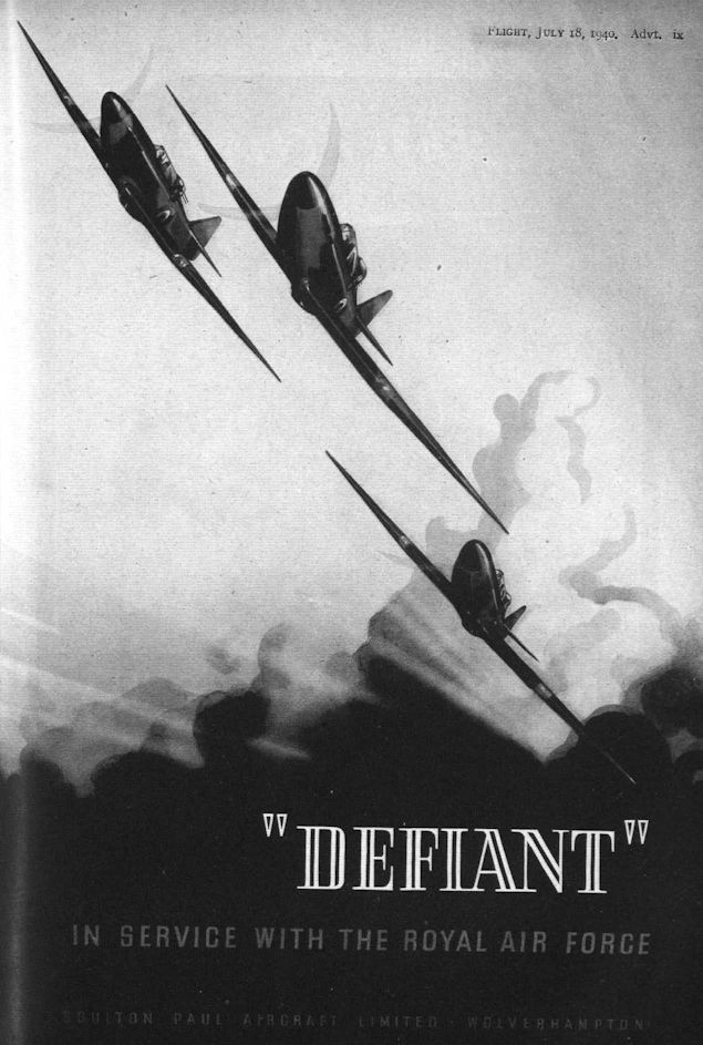 The Boulton Paul Defiant, for the design of which Mr. J. D. North was responsible, reflects admirably his biological outlook. The clean lines were obviously inherited from the "female parent," while traces of the influence of the "male parent" are obvious in the functionally necessary excrescences on top of the fuselage. -