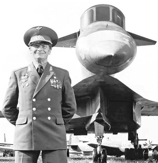 Заслуженный лётчик-испытатель СССР, Герой Советского Союза, генерал-майор авиации В.С. Ильюшин в ЦМ ВВС у самолета Т-4