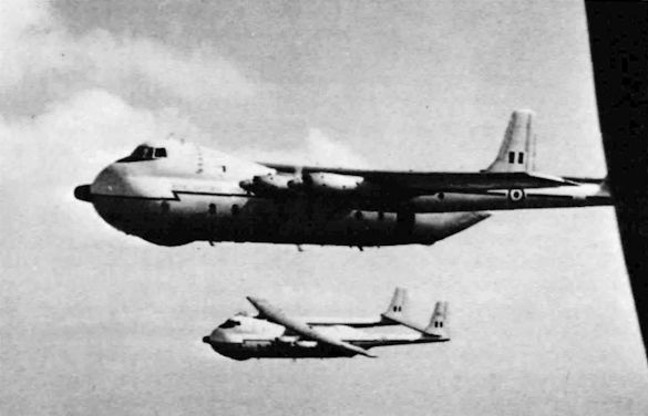 Регистрационный номер: XN814 [8] Argosy, в случае установки заправочного агрегата Mk 21, мог использоваться в качестве самолета-заправщика. На снимке: Argosy C.Mk 1 во время испытаний по дозаправке (в качестве заправляемого) от Vickers Valiant