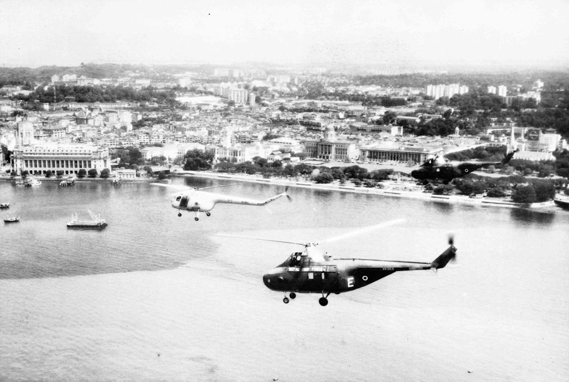 A formation from No.110 Squadron as it converted from Sycamores to Whirlwinds. In celebration, they toured the waterfront of Singapore in 1964