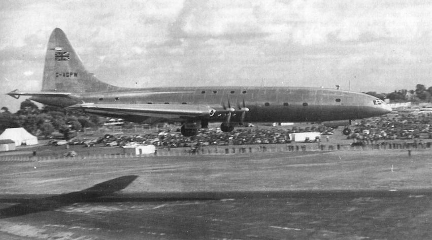 Регистрационный номер: G-AGPW [49] The Brabazon landing at Filton after its first flight on September 4, 1949.