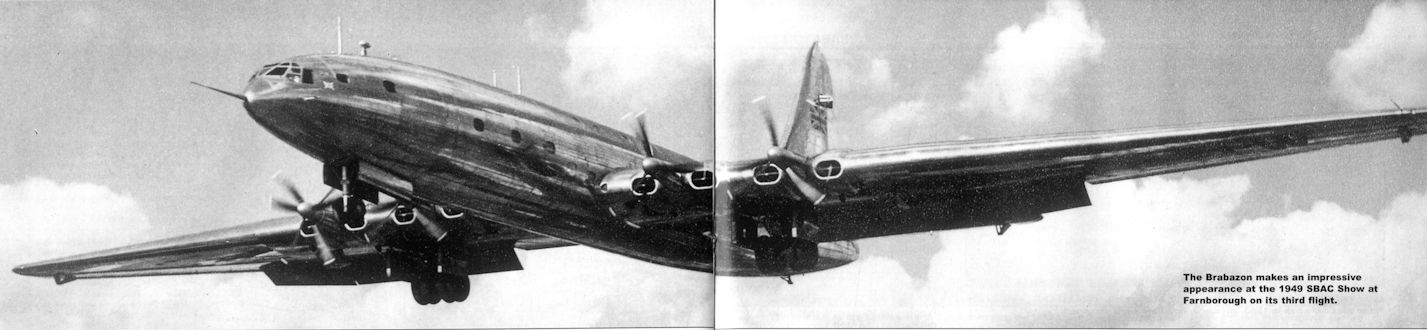 Регистрационный номер: G-AGPW [49] The Brabazon makes an impressive appearance at the 1949 SBAC Show at Farnborough on its third flight.