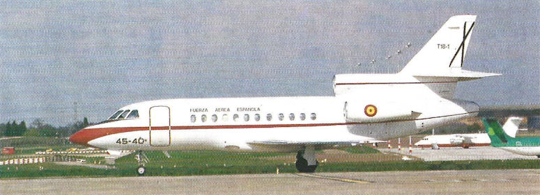 Spanish Air Force Falcon 900 T18-1 arriving at Birmingham Airport on May 6, 1996, bringing a delegation for the Western European Union Minister’s Meeting. There were 27 countries represented at the meeting, with foreign and defence ministers of 22 nations arriving by air.