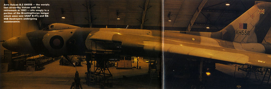 Регистрационный номер: XH558 [32], G-VLCN [32] Avro Vulcan B.2 XH558 - the world’s last airworthy Vulcan until its retirement in 1993 - sits snugly in a portion of the Bruntingthorpe hangar which once saw USAF B-47s and RB-66B Destroyers undergoing maintenance.