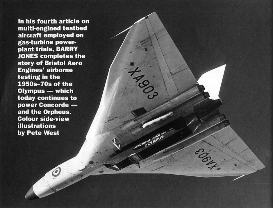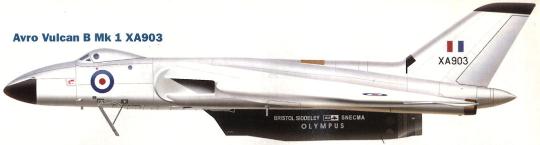 Регистрационный номер: XA903 [12] Бомбардировщик Avro Vulcan B.Mk 1 XA903 использовался для летных испытаний двигателя Rolls-Royce Olympus 593, установленного впоследствии на авиалайнер Concorde. Первый полет доработанный в летающую лабораторию бомбардировщик выполнил 9 сентября 1966 года.
