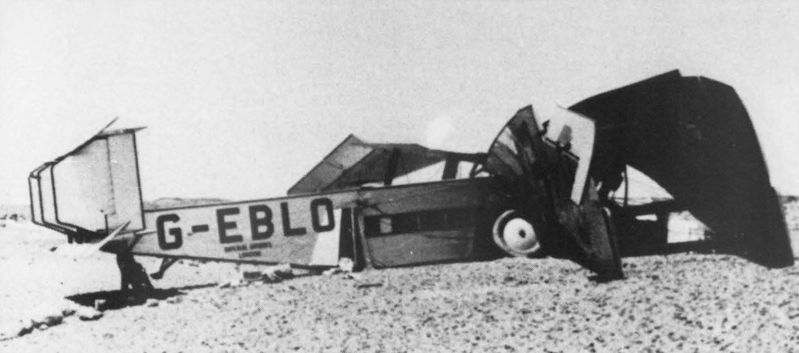 Регистрационный номер: G-EBLO [6] The end of G-EBLO, at Aswan on June 16, 1931.