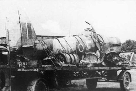 Регистрационный номер: DN510 The wreckage of DN510 at Meavy, on the south-west edge of Dartmoor in Devon, after its tailplane failed on February 4, 1943; the only instance of such an accident in which the pilot lived to tell the tale. Note the static balance lever still attached to the bracket on the bulkhead in the photograph at right. In some of the earlier tailplane failures the lever had sheared off from the bracket altogether
