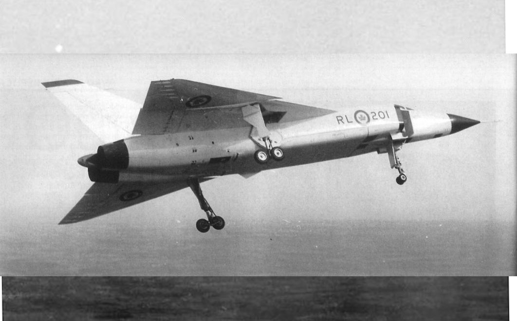 In order to simulate the CF-105’s flight characteristics large-scale free flight models were used, with rocket boosters to propel them to supersonic speeds.