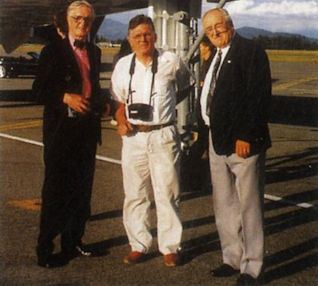 Jack Meadows (left), with Alan Jackson (centre) and George Proulx, President of the Canadian Museum of Flight, pose in front of the Arrow.