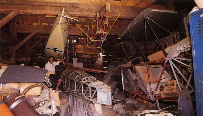 Aladdin’s Cave: an exclusive peep into Old Rhinebeck’s storage area, courtesy of Gene DeMarco, reveals a reproduction Fokker E III fuselage, the fuselage of one of the museum’s five New Standard D-25s, a repro Ryan NYP fuselage, and an original Kreider-Reisner KR-31 with its Curtiss OX-5 engine.