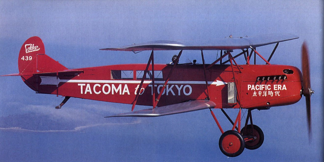 Регистрационный номер: N439FK [9] Vibrantly painted in its 1930 colours and markings, the restored N439FK carries Wark and Brown’s optimistic “Tacoma to Tokyo” legend on its fuselage. After several attempts to reach Japan, none of which got beyond the shores of North America, they abandoned the aircraft to the elements.