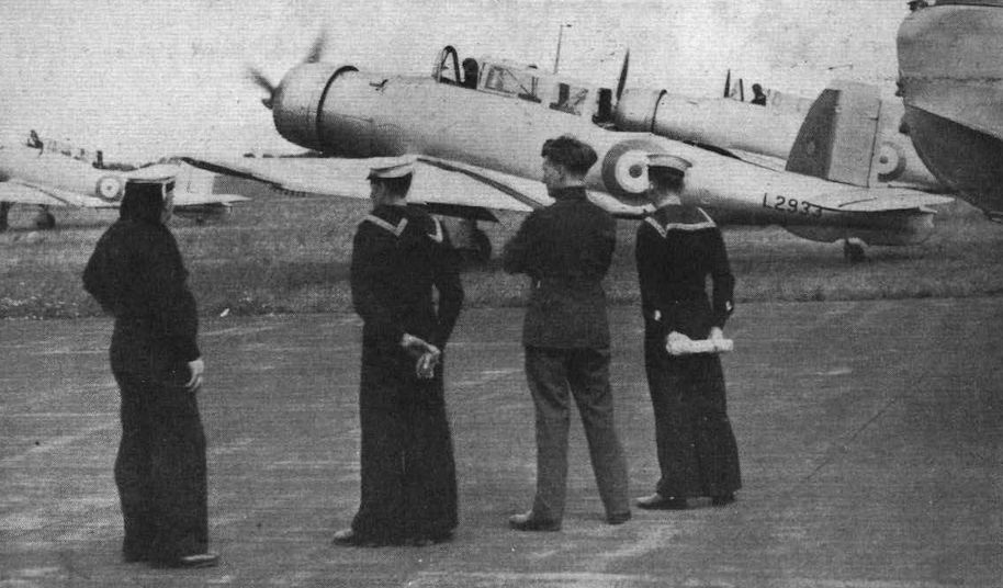 Регистрационный номер: L2933 ON A LAND SHIP: Blackburn Skuas which, with their fighting contemporaries the Rocs, are standard dive-bombers of the Navy, are seen here taking off from one of the Fleet Air Arm's aerodromes. It is interesting to note that all naval establishments, whether ashore or afloat, are treated as if they were ships, thus in the training establishment we find the names H.M.S. Daedalus H.M.S. Raven, and H.M.S. Kestrel