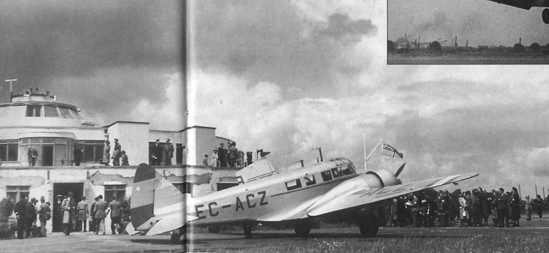 Регистрационный номер: EC-ACZ EC-ACZ was one of the Airspeed A.S.65 Consuls supplied to the Spanish airline Iberia early in 1948. It is seen later that year at a rally at Gatwick Airport. The building is the original terminal which was opened on June 6, 1936. It had six telescopic passenger jetties, was originally known as the Martello Tower and later as the Beehive.
