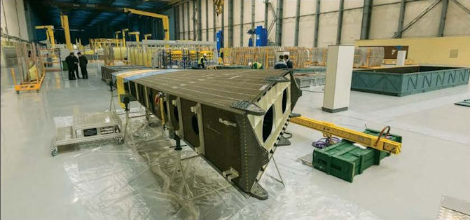 The first MS-21 fuselage on the IAZ assembly line in Irkutsk. The narrowbody airliner is set to be rolled out in the first half of 2016, with its maiden flight before the end of the year.