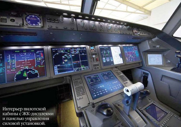 The all-glass cockpit of Irkut's MC-21-300 airliner.