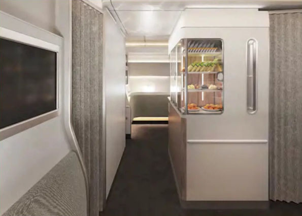 First Class passengers will have a fully enclosed suite with a separate bed, recliner lounge chair, and personal wardrobe