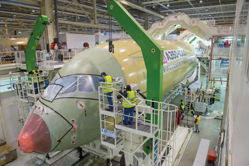The first A350 Extra Wide Body airliner is currently under construction. Cathay Pacific Airways has selected the A350-900 to form the backbone of its future mid-size widebody fleet, following the signature of a Letter of Intent (LOI) with Airbus for the order of 30 aircraft.