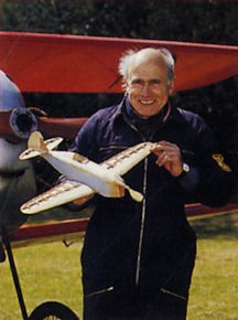 Регистрационный номер: D-692 [12] Lynn Williams, designer/pilot of the Flitzer and brother of the late aerobatic champion Neil Williams, holding a model of his projected Tigre-powered “SJ38" retractable-undercarriage monoplane.