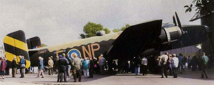 Регистрационный номер: LV907 [7] The Yorkshire Air Museum’s recreated Halifax attracts the crowds at its roll-out at Elvington on September 13, 1996.