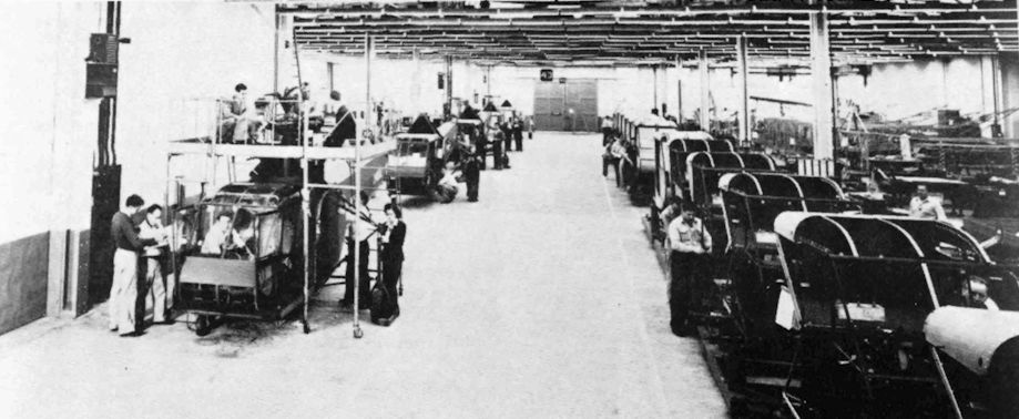 The first helicopter production line where R-4Bs were manufactured at Bridgeport, Conn, between 1943 and 1945