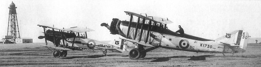 Регистрационный номер: K1730 [2] Fairey Gordon K1730 and Bristol F2.B FR4744 of 6 Sqn at Ismailia, Egypt, in the early 1930s, with the redundant airship mooring mast in the distance.