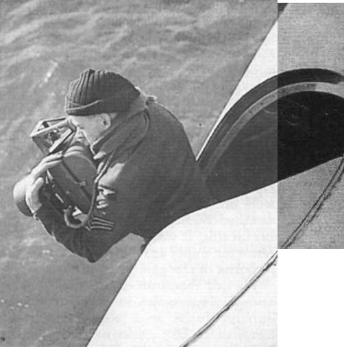 On look-out in a Short Sunderland. The gun positions serve also when photographs are being taken.
