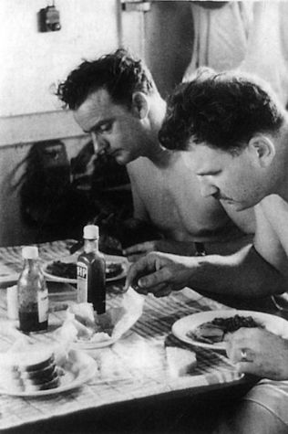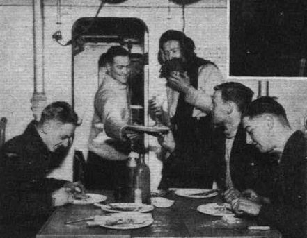 A welcome break during this cold weather. The crew of a Short Sunderland flying boat enjoy a hot meal, cooked on board.