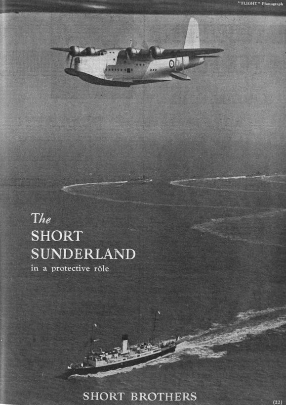 В 1941 г. эскадрильи летающих лодок были размещены в Исландии и временно - в Сингапуре, с апреля 1941 г.- в Сьерра-Леоне. В июле 1940 г. "Сандерленд" потопил первую немецкую подводную лодку, в январе 1941 г. - итальянскую субмарину "Марчелло". С осени 1941 г. большая часть машин этого типа действовала над Атлантикой. В ПЛО эти самолеты весьма успешно использовались до конца войны.