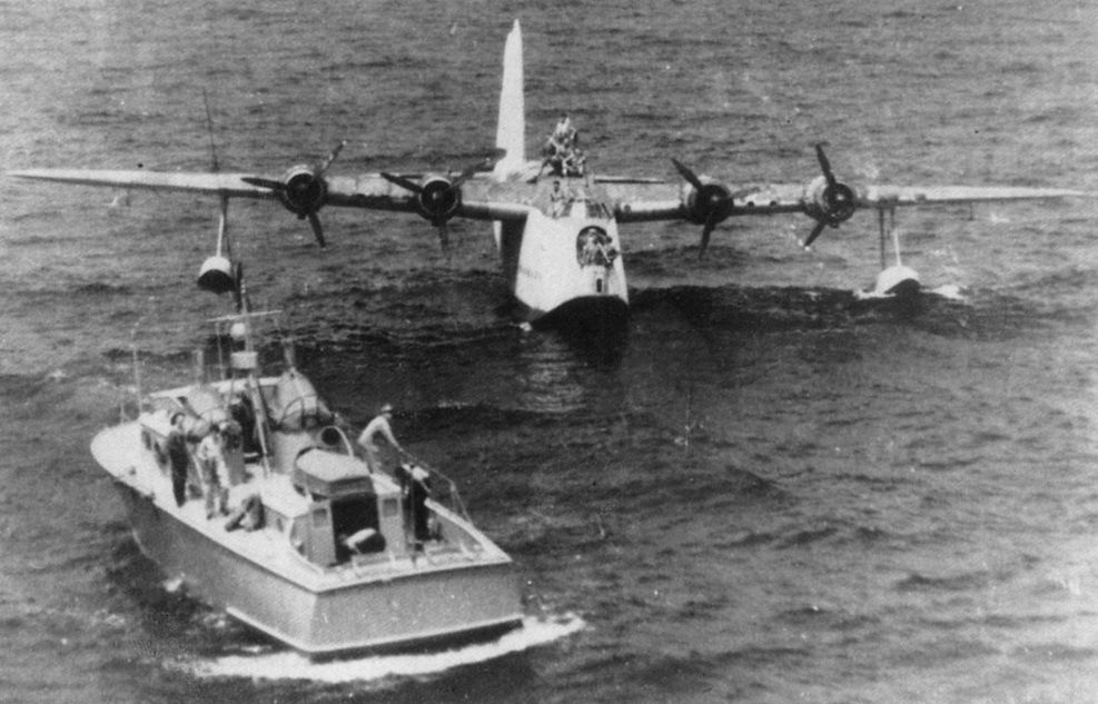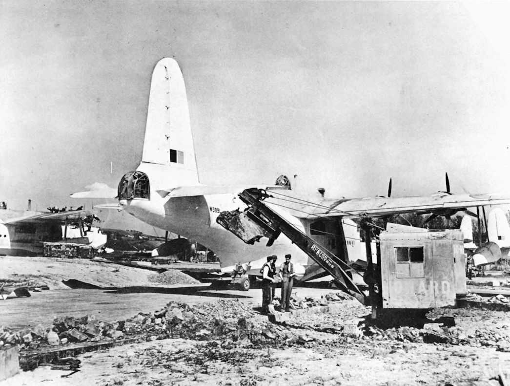 Летающая лодка "Сандерленд" V (Великобритания) вернулась из боевого полета, 1944.