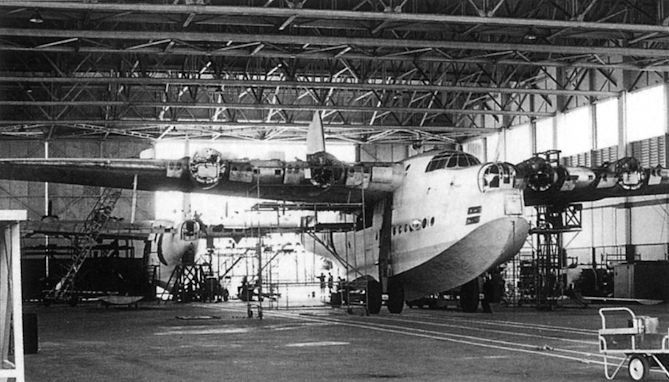 The Short Sunderland, which appeared at Felixstowe; it is seen on the "production line" at Rochester.