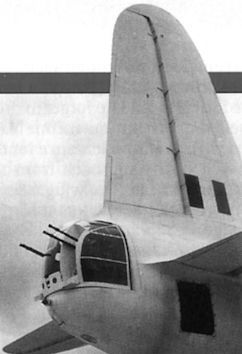 The modern Nash and Thompson power-driven turret with four Browning guns in the tail of a Short Sunderland flying boat.