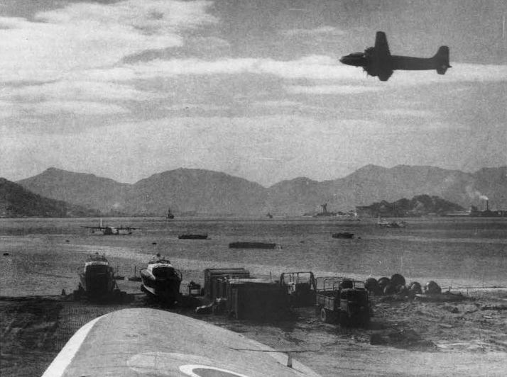 STRENGTH FOR THE EAS: A Short Sunderland long-range flying boat of the type now being supplied to Singapore, with a background of Singapore IIIs.