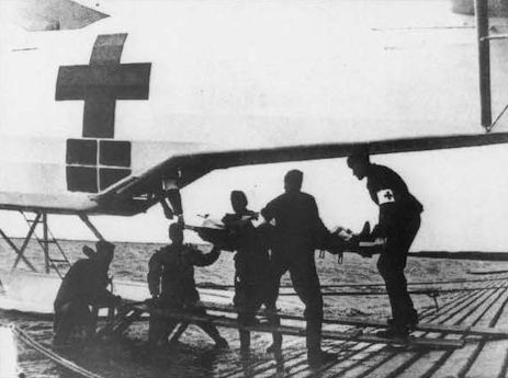 Loading a survivor into an He 59 via the ventral rescue hatch.