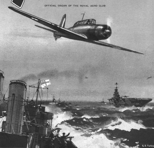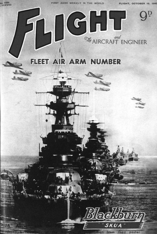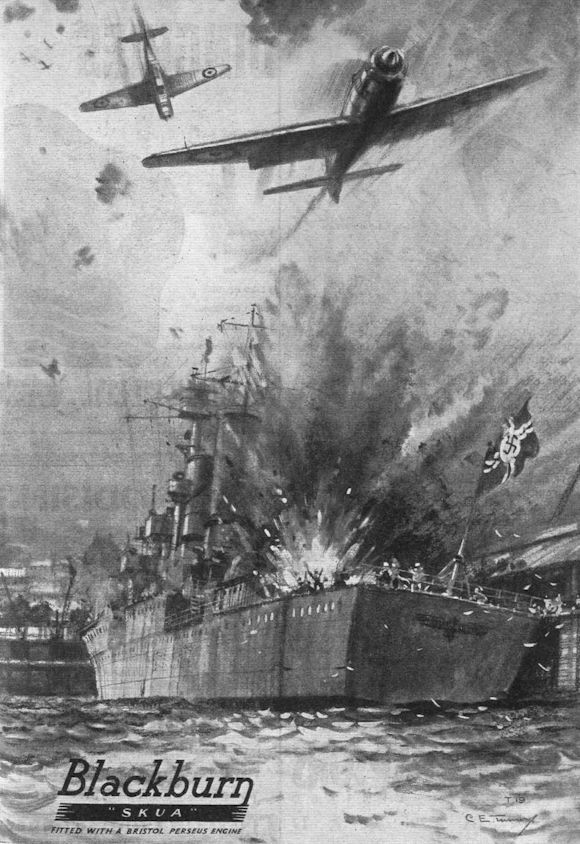 UNPOPULAR IN THE GERMAN NAVY are the Blackburn Skua fleet fighter dive-bombers. A flight of these is seen ready to take off from the deck of an aircraft carrier. These machines have lately distinguished themselves in operations all along the Norwegian coast where they have bombed Nazi warships and Stores.