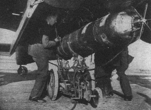 An unusual photograph showing a Beaufort carrying a “cucumber” sea mine. These 2,000lb mines were dropped in sea lanes and were activated by a ship's hull passing above them.