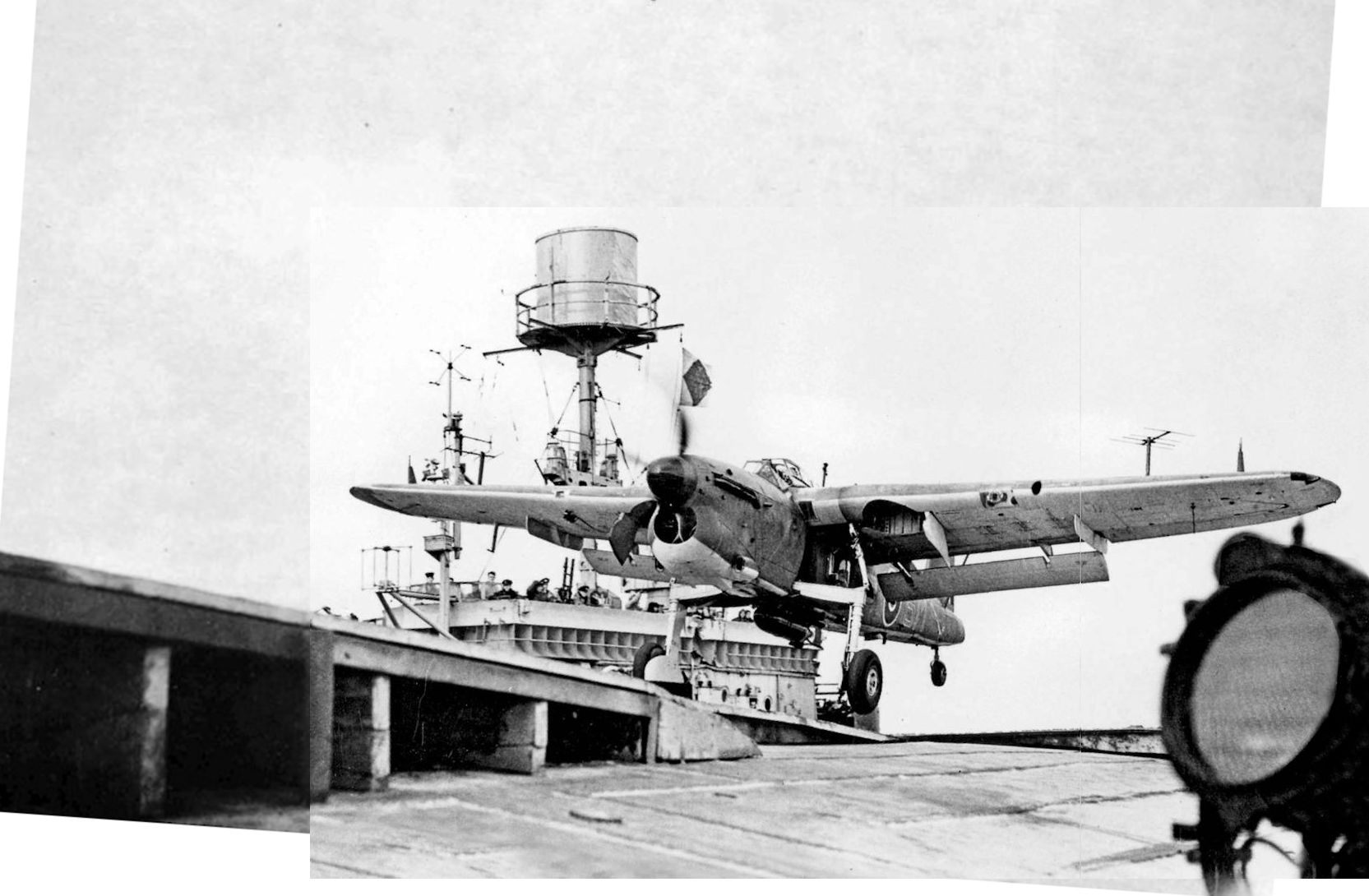Регистрационный номер: LS796 [2] Barracuda II LS796 of 767 Sqn was tested in August 1945 for wing fold mods. It was lost in the circumstances seen here in August 1946, leaving the carrier deck (possibly of HMS Ravager)