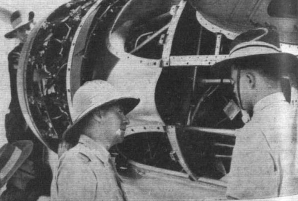 Регистрационный номер: N7205 [5] Sqn. Ldr. J. Addams, who is performing acceptance tests of the Lockheed 14s for the Royal Air Force at the Burbank, California, factory, with Mr. C. L. Johnson (the company’s chief engineer) and the first of the machines to be passed off test. Notable differences from the civil Lockheed 14 are the bomb aiming windows in the nose, windows in the roof of the pilot’s compartment and the large turret aft. The camouflage suggests that although the machine is designated a G.R. type its activities will not be confined to over-water flying. Other points of interest include slinger rings on the airscrew hubs and guides for the Fowler flaps