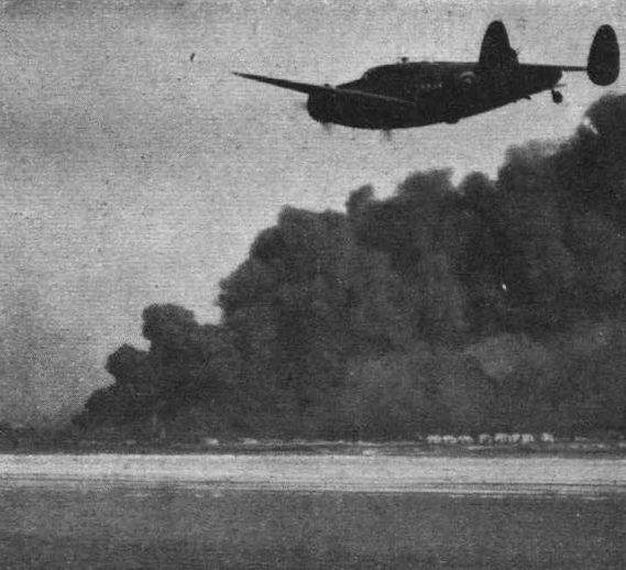 A Coastal Command Hudson lately came home with both wings pierced by A.A. shells and the fuselage spattered with shrapnel. A petrol tank was holed and the machine was brought back on one engine. One tyre had been punctured.