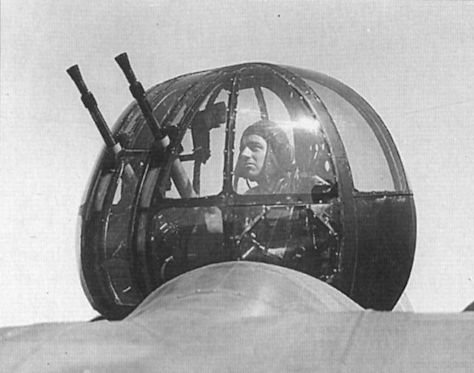 A navigator uses the hand bearing compass through one of the many panels in the nose of the Hudson. With the exception of the Hampden, the Hudson had the best-lit navigator's “office". -