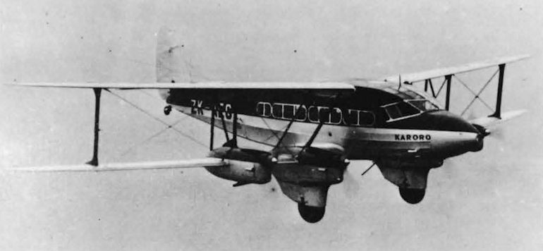 The prototype D.H.86 “Express Air Liner” with its B Conditions registration E.2 around the time of its first flight in January 1934, a mere four months after the decision was taken to proceed with the design. Note the original single-pilot “Roman” nose. Later examples were fitted with dual controls and a revised longer nose profile.