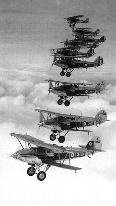 Регистрационный номер: K3982, K3983 Three 29 Sqn Demons. Nearest the camera is K3982, which later flew with Nos 601 and 600 Sqns before being relegated to a maintenance unit in October 1940. K2983, in the background, collided with K4538 and crashed near Dover on November 5, 1937.