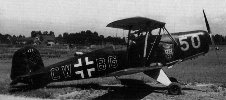 A visitor to Basle-Birsfelden, on March 5, 1943, was Bu 131A Jungmann CX+HI, Werknummer 314, from A/B Pilots School 23, Kaufbeuren. With a lost cross-country student, it crossed the Swiss border near Rheinfelden and landed with almost empty tanks. Wearing its school emblem on the nose, it had a yellow rudder. Refuelled, it returned to Germany the next day.