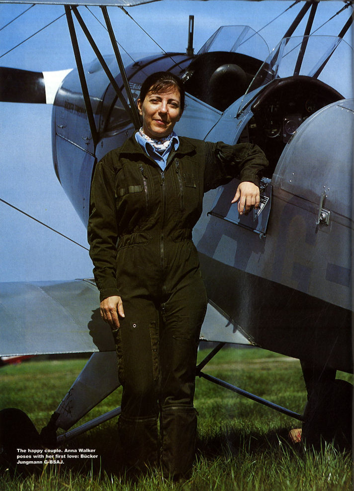 Регистрационный номер: G-BSAJ [7] The happy couple. Anna Walker poses with her first love: Bucker Jungmann G-BSAJ.