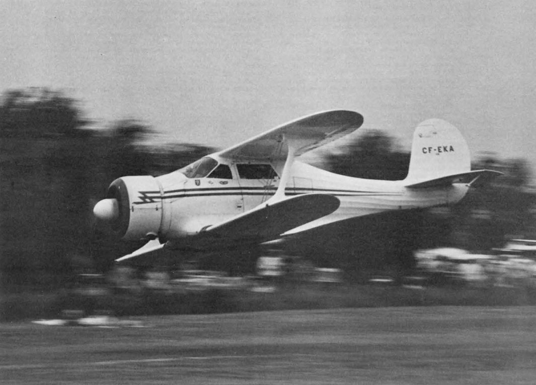 Регистрационный номер: CF-EKA [3] Known as the "Flying Back Stagger" the Beechcraft D17 is still in use in various parts of the world as a cabin 4-5-seater. Illustrated is CF-EKA at Montreal Airport.